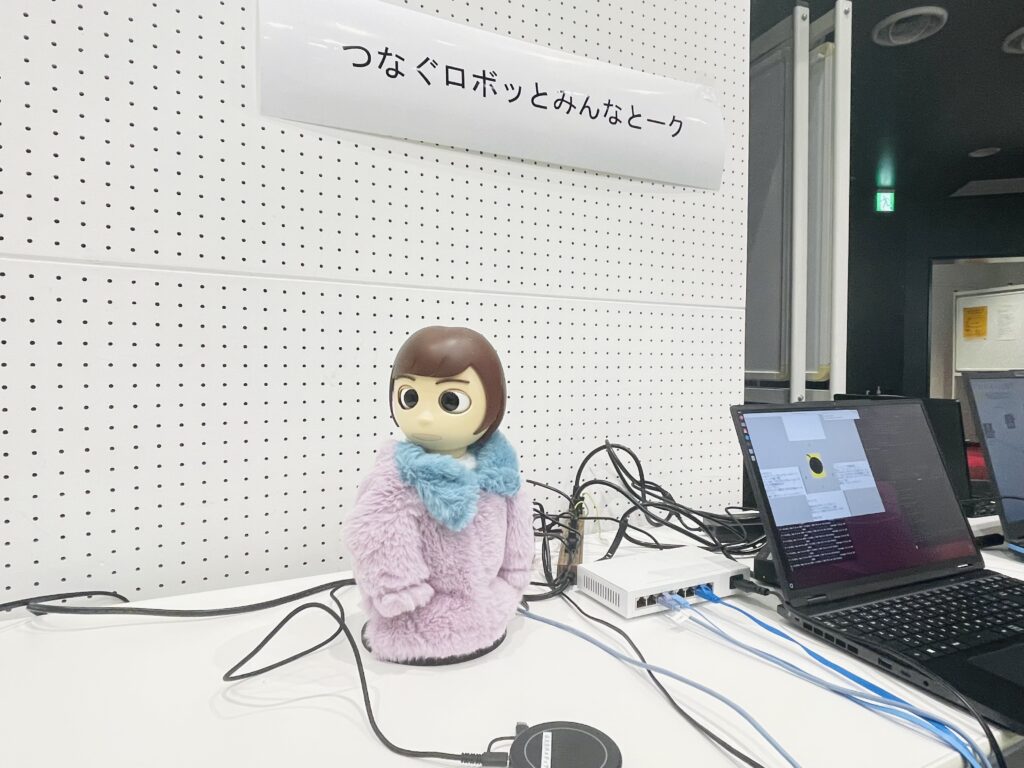 また、本プロジェクトにおける「社会における個人の特性研究班」の研究分担者である越智景子による、デモ展示「つなぐロボッとみんなとーク」も実施され、ロボットとのコミュニケーション体験が行われています。