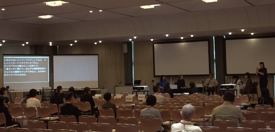 「コミュニケーション共生科学の創成」からは、研究者の登壇、映像資料の提供、展示構成の協力などを行うとともに、現地運営にもスタッフが参加し、来場者とのコミュニケーションや多様な言語形態に関する情報保障に貢献しました。