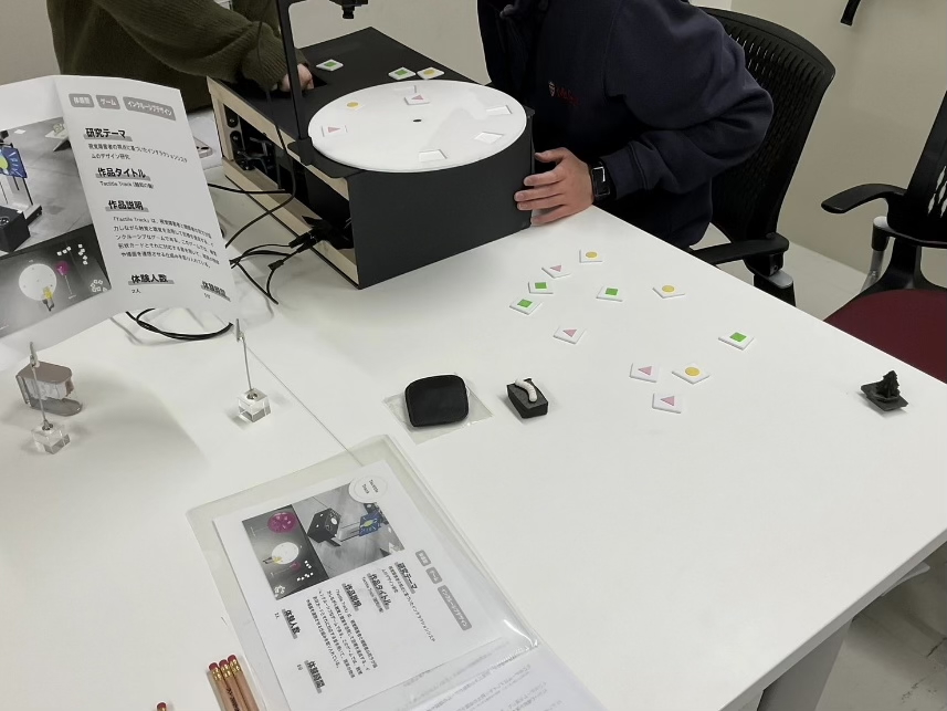 プログラムでは、東北大学の筒井先生による講演をはじめ、非視覚班の先生方によるワークショップや恒例の多摩美術大学の展示システム体験、視覚障害者用の9路盤体験などが行われました。