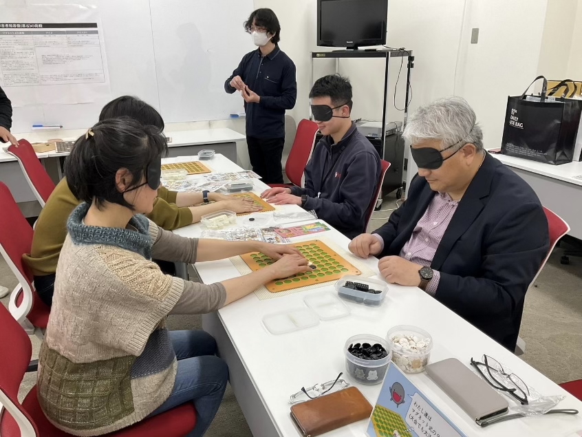 恒例のコミュニケーション体験を開催しました。今回は、自分とは異なるコミュニケーション特性を持つ人との共同作業だけでなく、目隠しをしての囲碁体験にも挑戦しました。